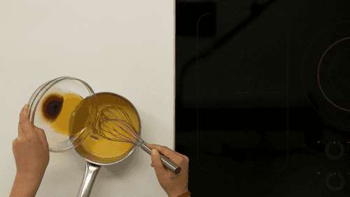 Затем поставить сотейник с ними на минимальный огонь и, быстро работая венчиком, загустить их. Как только они начнут загущаться, снять с огня и продолжать быстро помешивать их еще в течение минут двух-трех.