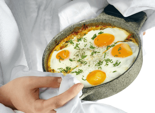 Запеченные яйца в восточном стиле — это утонченный шедевр японской кухни, сочетающий глубину вкусов и ароматов специй. Основа блюда — томленые овощи с тимьяном, кумином и карри, пропитанные куриным бульоном, создают насыщенную текстуру. Яйца, запеченные поверх этого ароматного основания, остаются нежными, а их желток приобретает бархатистую структуру. Блюдо напоминает уют семейных трапез и идеально подходит для неспешного завтрака или легкого ужина. Легкость приготовления делает его доступным, а восточные специи придают колорит. Украшенное свежей кинзой и зеленым луком, оно не только радует вкус, но и завораживает своим эстетическим видом.