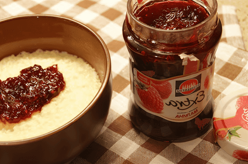 Пшенная каша с малиновым джемом