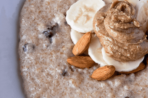 Каша из полбы с изюмом и миндальной пастой
