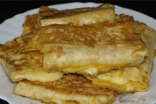 Каждый ломтик сыра обернуть полоской лаваша, окунуть в яйцо и обжарить по 3–5 минут с двух сторон на сковороде с маслом. Жарятся очень быстро.