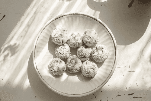 Сформировать шарики диаметром 2 сантиметра, равномерно обвалять их в муке или мелко перемолотых орехах, выложить на противень.