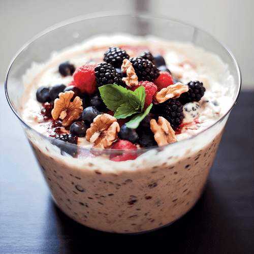 Домашние мюсли с фруктами, ягодами и орехами — это утончённое сочетание природы и пользы, родом из европейской кухни. Это блюдо, вдохновлённое традицией здорового питания, представляет собой гармоничное сочетание овсяных хлопьев, молока и йогурта, дополненное свежими фруктами, ягодами и орехами. Сладость меда и насыщенный аромат мяты завершают эту композицию, делая её идеальным вариантом для завтрака или лёгкого перекуса. Мюсли обладают мягкой, сливочной текстурой, с приятными контрастами хрустящих орехов и сочных ягод. Они не только радуют вкус, но и насыщают организм витаминами, клетчаткой и полезными жирами, обеспечивая бодрость и энергию на целый день. Готовится легко, а результат — наслаждение в каждом ложке.
