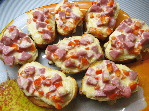 На каждый кусок хлеба выложить приготовленную смесь, разделить поровну между всеми кусками.