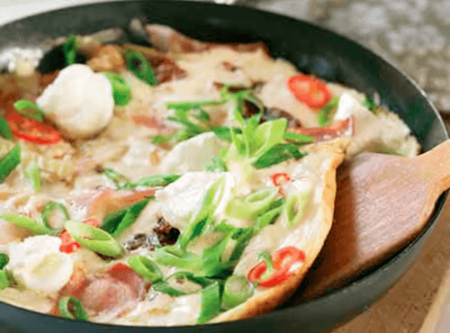 Яичница с шампиньонами, колбасками и сыром – это настоящий утренний шедевр русской кухни. Ее корни уходят в традиции домашней кулинарии, где простые, но насыщенные ингредиенты создают гармонию вкуса. Нежные шампиньоны придают блюду легкую грибную нотку, колбаски добавляют насыщенность, а растопленный сыр обволакивает всё мягкостью и ароматом. Кетчуп привносит легкую кислинку, которая делает вкус еще более выразительным. Это идеальный завтрак – сытный, быстрый и очень вкусный. Яичница отлично сочетается с свежими овощами, зеленью и хрустящим хлебом, превращаясь в полноценный прием пищи. Прекрасный выбор как для ленивых воскресных утра, так и для быстрого перекуса перед началом дня!