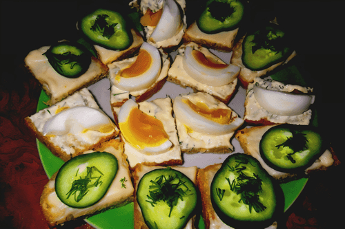 Канапе с чесночным майонезом, яйцом и огурцом