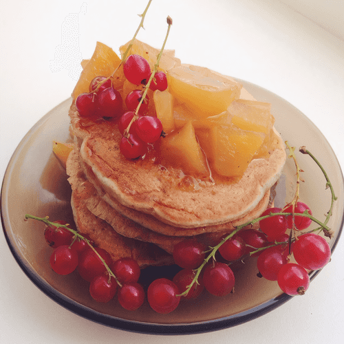 Веганские оладьи с яблочным соусом — это гармония вкусов и традиций русской кухни в современном исполнении. Легкие, ароматные, нежные, они вобрали в себя уют домашнего завтрака. Яблочный соус с нотками корицы и кленового сиропа придает им изысканную сладость и согревающий вкус. Эти оладьи — не просто блюдо, а настоящий ритуал, пробуждающий чувства и наполняющий день радостью. Благодаря миндальному молоку и льняной муке, они остаются воздушными и питательными, а специи придают им глубину вкуса. Идеально сочетаются с кислыми ягодами, создавая контраст вкусов, который так ценят гурманы. Эти оладьи — выбор тех, кто ищет вдохновение в еде и наслаждение в простых, но изысканных комбинациях.