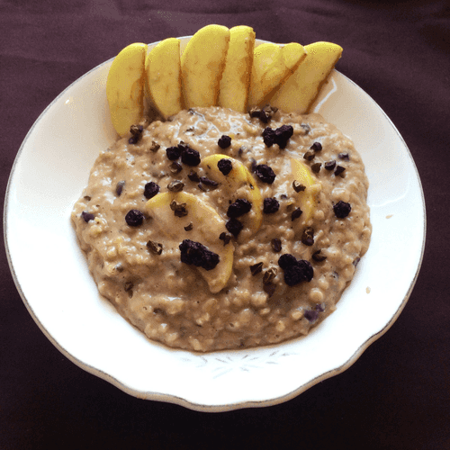 Овсяная каша с антоновкой, сушенной черникой и ревенем