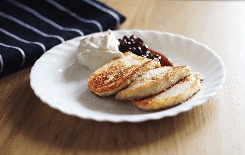 Горячий сыр сразу разложить по тарелкам, посыпать ванильным сахаром или пудрой. Подавать с джемом, медом, сметаной или фруктами.