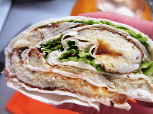 Омлет в лаваше с икрой и сыром