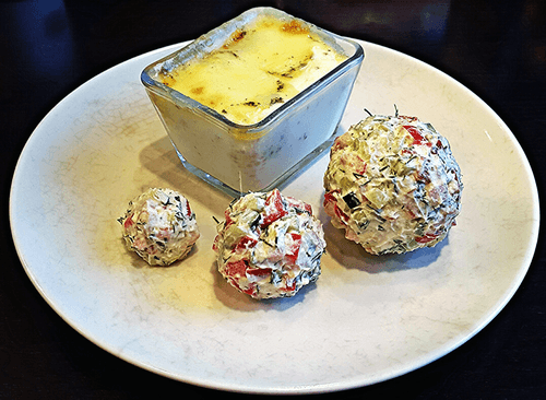 Яйца с моцареллой, сливочные шарики и тосты с томатами