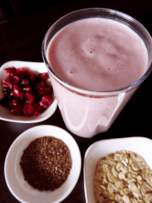 Бананово-клюквенный смузи с овсяными хлопьями и семенами льна