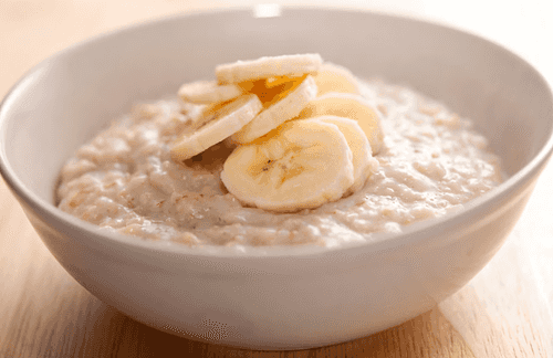 Хорошенько размять банан с экстрактом вилкой, снять кашу с плиты и вмешать к ней банан. Накрыть кастрюльку крышкой и дать настояться еще 5 минут, прежде чем подавать.