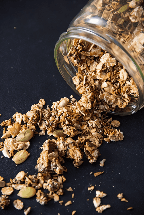 Гранола с корицей и мускатным орехом — это ароматное лакомство, родом из американской кухни, где ценят полезные и питательные завтраки. Это хрустящая смесь овсяных хлопьев, семян и орехов, покрытая теплым ароматом корицы и мускатного ореха. Кленовый сироп придаёт нежную сладость, подчёркивая естественный вкус ингредиентов. При запекании гранола приобретает золотистый оттенок и наполняет кухню уютными пряными ароматами. Её можно употреблять как самостоятельный перекус, добавлять в йогурт, молоко или фруктовые смеси. Прекрасный источник энергии для активного начала дня, она сочетает в себе баланс полезных жиров, клетчатки и медленных углеводов. Гранола с пряностями — это не просто еда, а настоящее кулинарное удовольствие, дарящее тепло и комфорт.