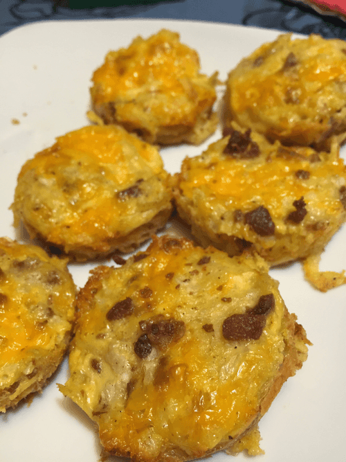 Поставьте форму в разогретую духовку. Выпекать 18-20 минут. Подавать байтсы следует горячими. Всего получается 12 штук.