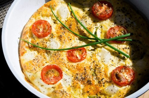 После этого сразу поставить фриттату в уже разогретую духовку. Готовить до румяной корочки.