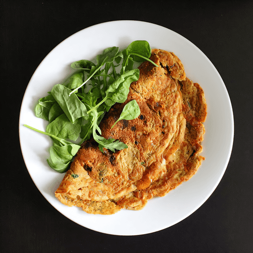Для достижения текстуры, напоминающей омлет, можно обойтись без яиц. Достаточно просто объединить конопляную, нутовую и овсяную муку.