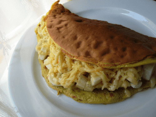 Сложим овсяноблин пополам и легонько прижмем, чтобы расплавившийся сыр «склеил» половинки.