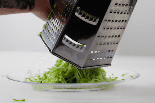 Кабачок натереть на крупной терке и посолить. Спустя 5 минут отжать их них сок.