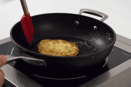 Сформировать и пожарить оладьи на растительном масле с обеих сторон. Подавать со сметаной или сливочным сыром.