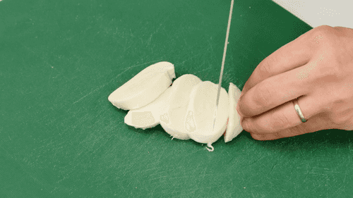С хлеба срезать корки. Моцареллу нарезать ломтиками толщиной около сантиметра.