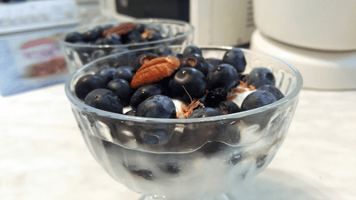 Десерт из йогурта с голубикой и пророщенной пшеницей