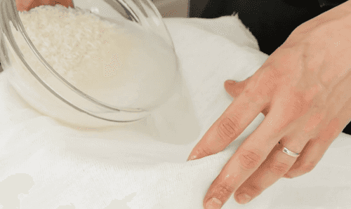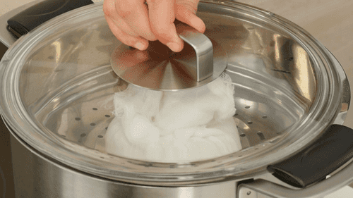 Завернуть рис в марлю и положить в пароварку. Варить до готовности — 20–25 минут.